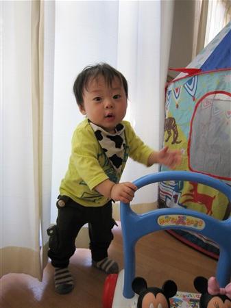 今日はたっくん親子とベビーサインの体験教室にベビーサイン知ってはいるものの、実践してるのは『美味しい』 と 『お歌』の2つのみたいちゃん、あたしの真似っことか全然しないしできるのかなぁと思いつつも、ベビーサイン自体には興味はあったので体験へまぁ、話を聞いてるとスグできるようなものじゃないし、お母さんの努力と根気が必要とのことう~~~ん続くんかなぁでも慣れれば簡単らしい実際にベビーサイナーの2人が来ていて『犬かわいい』とかやってました本当にやってくれればたいちゃんの気持ちが少しは分かってあげられるしコミュニケーションが取れるし、やっぱりいいかもやる気になって、お歌歌ったり、簡単なサインを教えてもらい、いざ実践ま、そんな簡単にできるわけないっかたいちゃんは今日めっちゃご機嫌だったので教室中を爆笑しながらウロウロお歌の時間もケラケラ笑い上機嫌ヨガで一緒の方もいらしてて久しぶりに会ったので、もう歩くくらい大きくなったんやと、感動してくれましたそして、お友達のところへ行ってはお友達のお菓子を奪い逃走挙句の果てに自分のお茶を飲まず、お友達のお茶が欲しいと暴走そんなたいちゃんにたっくんママも大笑いでしたベビーサインは、本当にいい勉強になりました気長に少しずつやってみようかと思います教室は通いたいけど、ヨガの日と重なるのと、ちょっと高いので今回は断念でもでも良い経験になりました『ボク…疲れた』1時間ご機嫌に遊び続けたたいちゃんもしかして。。。今日は寝てくれたりして(笑)