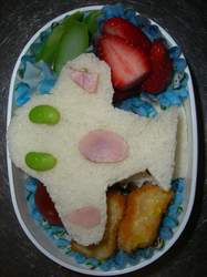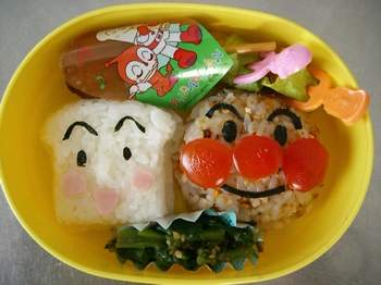はじめまして。これからできるだけがんばってブログ書いていこうとおもいますので皆さんよろしくお願いします。この4月から長男が幼稚園に通い始めました。ちょっと大きいけど年少さんです。毎日とっても楽しんで通っています。そして4月の末から初めてのお弁当が始まりました。これをきっかけにブログを始めてみようかなと思ったんです。そうすれば少し気合を入れてお弁当作り頑張れるのかななんてそしてなんかいいアイデアやグッズなんか聞けたらいいな 今日はしょくぱんまん弁当にしてみました中はチョコクリームをぬりました。その他にもや型のものも作っていちごジャムをぬりました。そして型ハンバーグ、マカロニサラダ、キュウイです。こんなんでいいのかな?みんなどんなの作ってるのか幼稚園に見に行ってみたーい明日はこいのぼり弁当にしてみようと思ってます。今日は幼稚園の帰りにお友達と児童館に行きました。すごーく疲れたみたい。買ったばかりの二段ベッドの上の段に夜初めて寝てくれました自分で二段ベッド欲しいって言っときながら二階には寝てくれなかったの・・・・お昼寝の時は何回か寝てはいたけどね。またひとつ出来ることが増えてお兄ちゃんになっていくのねえ今日はなんだかお天気がいまいちだったから明日は晴れるといいな