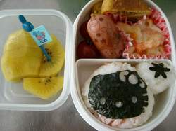 今日はお兄ちゃんのリクエストに答えてパンでミッフィー弁当にしました なんか左目が失敗しちゃって補正できずこんな感じミッフィーは得意のチョコぱん、カレーパンマンのポテト、からあげ、トマト、いちごそしてこの前カラオケに行った時二人のお友達がゴールデンウィークのおみやげをくれたんです。そのときにりえるさんからもらったトーマスゼリーを入れました。貰ったときあっという間に食べてしまったんだけど一つだけなぜか残っていたのもう一人のお友達からはディズニーランドのクッキーを貰ったんだけそれもあっという間に無くなってしまって・・・二つともとっても美味しかったですどうもありがとうでしたそしてそして私はというと何一つ買ってこなくてごめんなさ~~いほんとにヒドイ・・・・この次こそは何か買ってくるから待っててねえそしてこれから実家のママがまたまた来てくれるんです明日はお兄ちゃんの初参観日私はこの日を待ちに待っていましたとっても楽しみなんで~す。ウキウキ気分で楽しんで来たいのでチビチャンをまたまた見ていてもらうことにしました。お母さんいつもいつもホントにいつもありがとうそしてもう一つ楽しみが・・・誰かがくると夜外食ができる私は外食がだ~い好きなので何を食べに行こうか考え中・・・普段はほとんど外食が出来ないのでうれしいよ~~~
