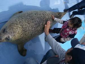 今日はお友達とで40分くらいのところにあるごまちゃんセンターに行ってきたよここは大人200円で入れてごまちゃんのえさやりをごく近くで見たり触ったり出来るところなのです。 ちょっとヌルっとしてて感触はう~んいまいち?でもみんなで触ってきました~このごまちゃんは1日の半分はこのまま動かず立ったままだそうでホントにびくとも動かず奇妙でした長男はそのごまちゃんに一生懸命「ごまちゃ~ん、泳ぎなさ~い、こっちおいで~」とか言ってたけど、もちろんそんな声には動じず・・・「そこにいたいんだって」って諦めてはいたけどずっと見ていたよ♪そのごまちゃんセンターの横には砂が白いホワイトビーチがあって少し砂遊びをしてその場をあとにしました夕方3日間いてくれたお友達が帰ってしまいとっても寂しかったよ~また着てね~チビチャンは「りこもいく~っ」ってずっとお友達から離れないでいたよそのあと義母のところにあじさいの鉢植えを届けてきました私の母にはか~なり迷惑かけてるのに何もなしでホントごめんなさいこれからもよろしくね
