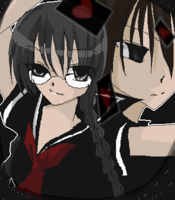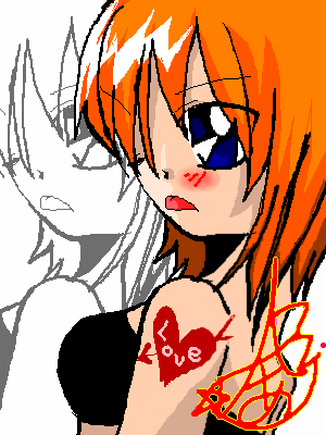 ★服装の模様があまり思いつかなかったのでハートにしました(汗)ほんとは 黒髪だったのですが青色にしちゃいましたw顔や体とかもちょっと刺青っぽ くしたのですがなんだか血染めなかんじになってしまいました==;