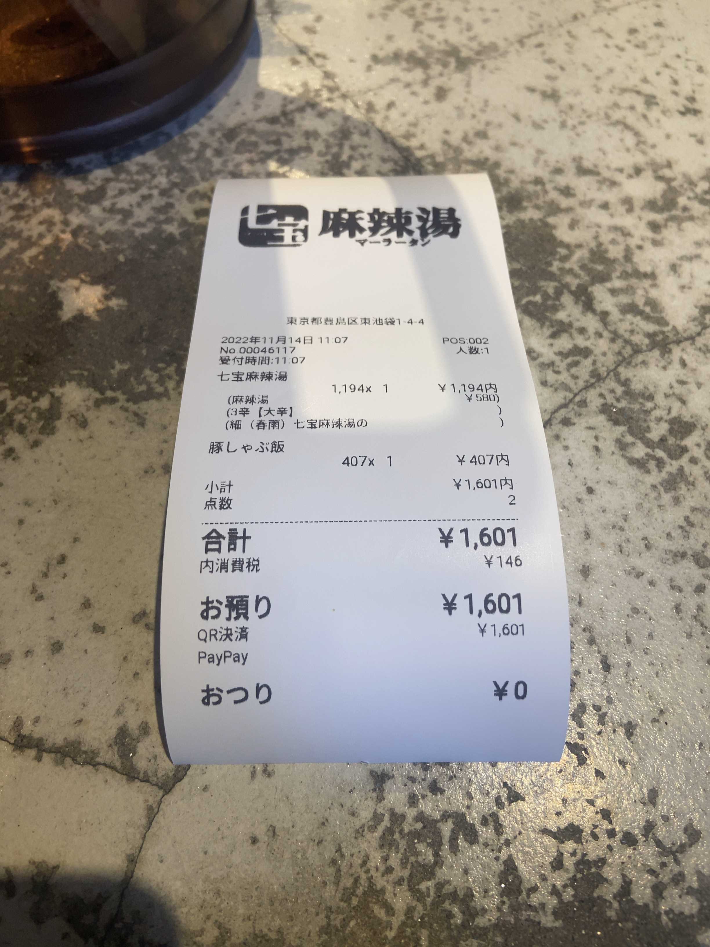 七宝麻辣湯 薬膳スープ春雨 2022.11.11