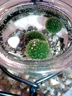 見てみて~マリモが凄い事に酸素に包まれてマリモが浮いてる~水換えをすると いつも気泡が出来てはいたけどこんなに上まで浮かんだのは初めて石をミネラル鉱石に変えたからかな一番大きなマリモはさすがに少しの衝撃で気泡が取れると沈んだり浮かんだりを繰り返していますが後の2つは浮かんだまま逆に大丈夫なのか