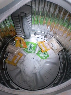 と言いながら洗濯機に向かって投げ入れとりました(┳◇┳)