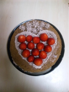 マコの好きなイチゴをたくさん乗せて挟んでみた。