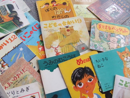 ここ数日間、実家の大掃除をしてました。でてくるわ、でてくるわ・・・学生の頃の講義バインダーやCDなどが。一度処分したと思っていたのですが、まだ眠っていたようです。その中に、私がおチビぐらいのときに読んでいた絵本が40冊ほど出てきました。(たくさんあった本のうちの数冊ですが)ウン十ウン年前の絵本なので、ちょっとホコリ臭かったのですがでも、そっくりそのままの状態でした。見つけたおチビは、「うわぁ!いっぱい絵本があるよ~!!」と大喜び♪「これはね、お母さんが小さいときに読んでいた絵本なんだよ。」と教えると、「じゃあ、ちっちゃい時のお母さんのを僕が読んであげるね。」ですって(笑)今でもお店に並んでる本もあったりしますが、ほとんどが絶版になったものやハードカバーとして出版されなかったのもの。私にはとても貴重な本です。わたしがすごく気に入って読んでいた本はもうぼろぼろ。でも、なぜか息子もその本を気に入って、何度も「読んで!」とリクエストするんです。絵本の好みの傾向がにているのかなぁ~