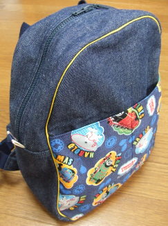 おチビのおいも掘りリュックが完成しました。まだ遠足まで間があるし、急いで作らなくても良かったのですが・・・もの作りってはまるんですよねー。一気に仕上げたくて、夜な夜なミシンと格闘していました。ジャジャーン!!(なんてたいそうなもの作ってませんが・・・)出来上がりはこんな感じ↓トーマスリュックです。トーマスの布地にあわせて、ベースはデニム地にしてみました。あんまりにも地味かな?と思ったので、黄色のパイピングをアクセントにしてみました。むふふふ・・・表のトーマスの部分はポッケになってるのですが、それだけじゃおチビが納得しないと思い・・・裏(しょったときに背中があたる部分)にトーマス布地を持ってきました。これなら背負うときに必ずトーマスが見えるでしょう?で、内側は・・・こんなかんじブルーのギンガムチェックの裏地にしました。縫いしろの部分はバイアステープでくるんで始末しています。これで強度があがりました。今日はこのリュックにおもちゃを入れて遊んでいますo(*^▽^*)oあとは、シャベルにしんかんせんのシールを貼らなくちゃ☆これで「おいも掘り嫌だ」なんて言ったら、おかあさん泣いちゃうからぁ~(笑)育児日記人気blogランキング ポチッと応援お願いします☆