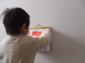 私の実家の父が「日めくりカレンダー」を送ってきました。「おチビに毎日めくらせるように」とのこと。毎日、日にちが変わること、年、月、曜日を教えること・・・がおじいちゃんのもくろみのようです。曜日は漢字で表記されてます。もしかしたら今年の年末までにはカレンダーにある漢字も覚えちゃうかも!と、期待してみたり(^^ゞおチビは毎日日めくりカレンダーをめくるのが楽しいようで、今のところは皆勤賞!ちゃんと12月31日まで続くかな?「きょうは8日だっ。おしごと、おしごと♪」びりびりびり・・・「あり?」「うまくやぶれないんだよなぁ~(ぶつぶつ)」「よしっ!8日になった。あれ?赤い絵が描いてある。へえ、お祝いの日なんだぁ~。」ご覧の通り、昔ながらの日めくりカレンダー。おチビの身長にあわせて、中途半端な位置に掛けてあります。正直、お部屋のインテリアとはまったく合いません。そのあたりが(かなり)不本意ですが・・・(* v v)一年間がまんします。それにしても、朝起きて着替えた後のおチビ。髪のねぐせがすごいですねーw(゜ー゜;)w育児日記人気blogランキング ポチッと応援お願いします☆