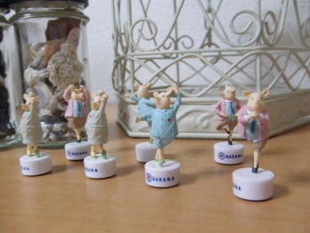 昨日は幼稚園をお休みしました。熱もなく元気でしたが念のため・・・ね。園内でも風邪が流行っているようです。みなさんも気をつけてくださいね☆今日の朝は雨!大雨洪水警報が発令されるほどです幼稚園は自由登園となりました。(行っても行かなくてもいいんです。行かなくても欠席扱いになりません。)そんなわけで、今日もお家遊びをしている鼻タレおチビです。おチビの近頃の疑問。それは『磁石は何につくの?』ということ。我が家にはピグリンが7体おります。このピグリン、サントリー『DAKARA』のオマケ。磁石の上に乗っているピグリン、別の磁石を近づけるとくるくるバレエを踊るというしくみ。かわいいでしょこのピグリンを色々な場所にくっつけて遊んでいるおチビ。ジャムのふた、子供用椅子のパイプ部分、自分のペンケースなどなど。磁石がどんなものにつくのか試しています。植木鉢や籐かごにも近づけていました。でも、つきません。おチビ「そうか!わかったぞ 磁石は硬くて冷たいものにつくんだ!」おしいっっ(笑)ワタシ「ガラスも冷たくて硬いけどつかないよ。」と突っ込んでみると、ちょっぴりおチビは考えた。おチビ「あ~、ガラスは冷たすぎるからねぇ。冷たすぎるとダメかも。」(*≧m≦*)ププッワタシ「じゃあ、磁石がついたものを集めてごらん。何かわかるかもよ。」と、ちょっぴりヒントを与えると、いそいそと磁石がつくものを集め始めました。おチビ「わかった 叩いたらカンカーンって鳴るものだぁ!」(*≧m≦*)ププッこの後、『鉄』につくことを教えてみましたけどね。4歳なりに一生懸命考えたようです。最近疑問だらけの、おチビの頭の中。そんなわけで、私も質問攻めにされることが多くなりました。しかも、一言で返せない質問ばかり。台風のニュースを見ていたときにも、「『ダメージ』ってどういうこと?」「『犠牲』ってなに?」うっ。意味はわかるけど、おチビにわかるよ~に砕いて説明することのなんと難しいこと!!!今まで時々しか使わないので、本棚の隅で鎮座していた国語辞典。今は、いつでも調べられるように居間の目に付くところに置いてあります。ワタシも鍛えられるなぁ~***********************************************************************メインサイト【 Cyokin Note 】もよろしく