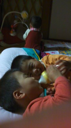今までミルクもおっぱいも「赤ちゃんのだよ」と欲しがらなかったのにねぇ。
