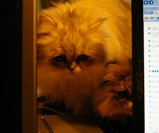 パソコンをしていると、クロとリンが邪魔をしてきました(>_