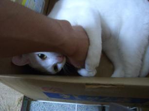 そのあと後ろのダンボールに入り込み彼とのじゃれ付きタイムが始まりました。