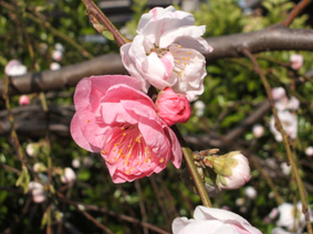 庭に咲いたしだれ桃 今日はとってもいいお天気でした。日本橋のデパートをぶらぶらしてから 国立近代美術館へ。藤田嗣治展をやっていて たくさんの人でした。裸婦の肌の色の出し方を絶賛されたことによって有名になっていったそうです。大勢の裸婦が描かれていました。武道館近くからの眺め。武道館では大学の入学式も行われていました。靖国神社の出店は超満員 屋台も繁盛!ボートに乗るのも長蛇の列で一時間待ち。乗っている人を眺めて満足!この後半蔵門まで歩いて 銀座まで行って歩いて歩いて足が棒のようになってしまいました(´~`)今日一日よく歩きました。でもとってもきれいな桜に感激、生ビールもとってもおいしかった~!