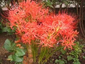 今日はお彼岸の中日、お墓参りに行ってきました。庭に咲いた彼岸花を少し切って 持って行きました。いつからか 庭の片隅に咲くようになった彼岸花。場所を変えたことを忘れ 七月に浅草のほおずき市で買ったほおずきを同じ場所に植えてしまったのです!彼岸花は一週間ぐらい前から お彼岸めがけて土の中から ほおずき避けてつんつん出てきて いつものようにお彼岸にはしっかり咲きました。本当に不思議です。春と秋のお彼岸に ちゃんと咲くのですから・・だから彼岸花と言うのでしょうけど それにしても不思議です