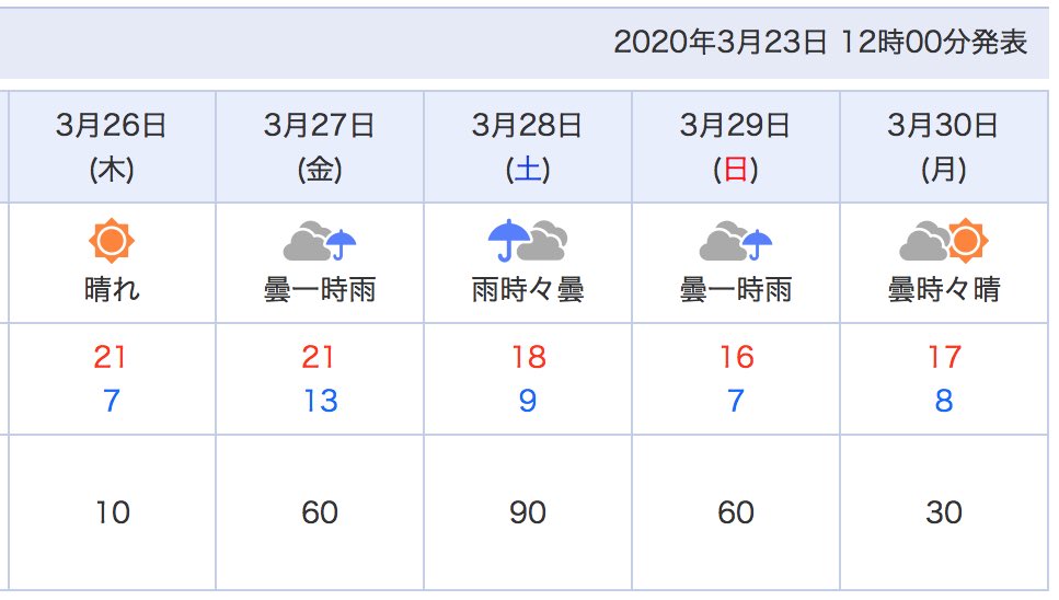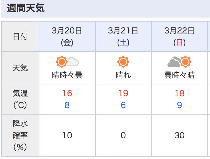 今週末のお天気がほぼ固まりました。それがこちら。暖かく、晴れマーク。とても素晴らしいお天気です。本来なら里帰りツーリングをするはずでしたが、新型コロナの件で、おふくろから帰ってくるなと言われてしまい、あえなく中止となってしまいました。(苦笑)ならば、どう使うか?!先週はバイクで走られませんでしたから、当然走るつもりです。金曜日は当直明けで帰ってきますから、体力的には十分ではありません。最近白かぶで走っていませんし、白かぶの出番も作ってやらなければいけません。どの日に、どのバイクで、どこに行くか・・・???なかなか楽しい検討です。(笑)(それぞれの特長を活かしたルート選択と計画がいいですね〜〜〜。それを考えるのもツーリングの楽しみの一つです)*へぇ~とか、うんうんと思われたら、こちら↓をポチッとおねがいします!*にほんブログ村