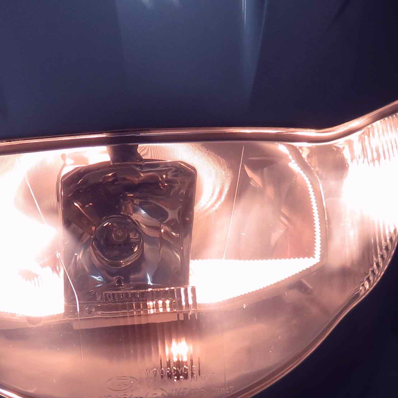 バイク屋さんで両側のフォグランプ交換、そしてオイル交換+エレメント交換を終えて帰ってきました。フォグランプが切れてからかれこれ1ヶ月が経ちますが、以来格好が悪いので、フォグランプのスイッチは切っていました。すると、ヘッドランプのみではやっぱり暗くて、トンネルに入った時に前が見えづらくてとても困りました。それに交差点での右折車が結構強引に曲がってくることが多くなり、ヒヤッとする場面も多くなっていました。ヘッドライトのみでは、やっぱり「威嚇効果」が弱いのだと思います。今回左右フォグランプの同時交換を勧められてやってもらいましたが、左のカウルを外しての2時間弱の作業で、かなり大変だったようです。メカニックさんが唸りながら作業されていました。(笑)これでまたしばらくは、安全に走ることができることでしょう。銀ちゃんの目玉、ここに復活です!(横長の銀ちゃんの「目」はとっても魅力的です。目力がありますね〜(笑)。これで対向車をじっとにらみつけて、その存在をアピールしてくれます。ハロゲンなのでまぶしすぎず、バイクの輪郭もアピールできるので、かなり気の利いたビームだと思います。)*へぇ~とか、うんうんと思われたら、こちら↓をポチッとおねがいします!*にほんブログ村