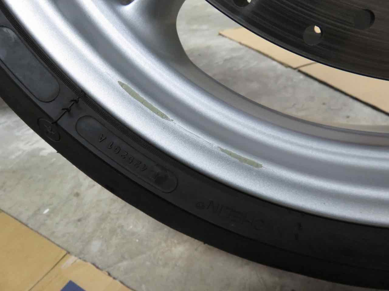 今日は、一日雨が降っている大阪・山の中。そういう日にはバイクで走りたいという気持ちが全く湧きませんから、補修作業に専念できますね〜(笑)午前中は白かぶのメインテナンス作業に時間を費やしましたので、午後からは銀ちゃんのホイールの傷を補修することにしました。ずっと以前、ディーラーで前タイヤを交換した際に、前タイヤのホイールを傷つけられていました。気にはなっていたのですが、当時は道具も何もありませんでしたから、ずっとそのまま放置状態でした。去年の暮れにたまたま「ホイール用タッチアップペン」というものを見つけて、とっさにそれを購入していました。ただし、そのまま放置状態・・・そして今日、その出番がようやく訪れた次第です。(笑)ちょっと雑になってしまいましたが、まあよしとしましょう。傷が目立たなくなればそれでOKです。こうして雨の日に補修して、そしてまた晴れた日に走る。その繰り返しですね。(こちらがビフォアー)(こちらがアフターです。まあ、これで目立たないでしょう(笑))*へぇ~とか、うんうんと思われたら、こちら↓をポチッとおねがいします!*にほんブログ村