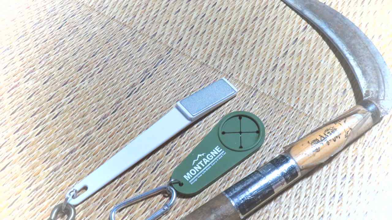 職場で週末のお天気が好転したことを確認した私。いよいよ「墓掃除ツーリング」に向けての準備が始まりました。職場の帰りにセリアに寄って、必要物品をゲットして帰ってきました。(笑)今まで何度も墓掃除を行ってきましたが、私は主にエビナタと草刈り鎌を使い分けながら作業を行います。そのため、使っていないほうを収めるホルダーが必要でした。もともとエビナタはおやじから専用ホルダーをもらっています。今回新たに必要だったのが鎌用のホルダーでした。先日、そのホルダーとして、セリアで売られている「タオルホルダー」を流用することを思いつきました。カラビナで腰の部分に吊っておき、シリコンの中心部分に鎌の柄を差し込めば、滑ることなく、置き忘れることもなく、手も塞がずに持ち歩くことができます。それに加えて、セリアの包丁研ぎ器「ハンディーシャープナー」も購入しました。鎌やナタの刃の切れが悪くなった時、これを携帯しておいて、その都度研ぐことで切れを維持することができます。これで墓掃除に関連した物品の準備は整いました。(笑)(できるだけ効率的に作業ができるように、わが家から使い慣れた道具は持って行くつもりです。その中に、本日セリアで買ってきたダイヤモンドシャープナーとカマ用ホルダーを入れることにしました。これで刃物の切れが悪くなったときにその場で研げるし、鎌の置き忘れも予防できると考えています)*へぇ~とか、うんうんと思われたら、こちら↓をポチッとおねがいします!*にほんブログ村