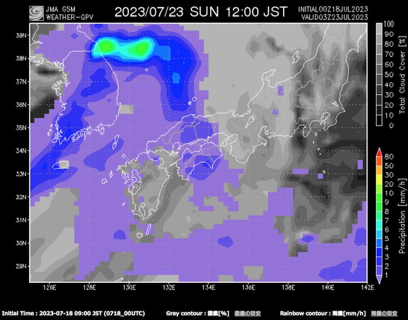 なかなか天気がはっきりしない週末のお天気。土曜日は晴れますが、問題は日曜日のお天気です。雨が降ることは間違いないのですが、問題はそのタイミング。向こうを朝の6時に出発すれば、ぶっ飛ばして9時には帰阪できます。岡山に雨雲がかかり始め、大阪まで到達するのに3時間を要します。朝の6時の時点で雨が降っていなければ、雨に降られずに帰阪できます。そこで本日のGPV気象予報がこちら。岡山に雨雲がかかるのが日曜の昼12時頃となっています。これならいける!!でもまだまだ火曜日です。もう少し精度が上がらないと、今週末の決行判断はできません。少なくとも、今朝の時点ではまだアウトでした。6時から雨雲がかかっていましたから。雲がかかる時間が後ろにずれ込んでくれることを切に祈っているちちおにんです。(この雨雲の分布なら、帰路を経たれることはありません。土曜日に「岡山・墓掃除ツーリング」を決行できます。今後の天気の変化を注視するちちおにんです!)*へぇ~とか、うんうんと思われたら、こちら↓をポチッとおねがいします!*にほんブログ村