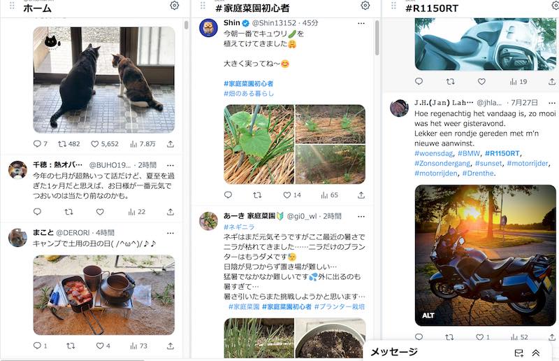 外に出ると体が溶けそうなくらい、うだるような暑さの7月最終日曜日。外に出るのは危険ですね。昨日のうちに・次男坊のベッドの取り壊し・第1池、第2池、第3池の水換え・ニンニクの皮むき・サボテンの避暑を終えているので、もう今日は外に出ないと心に決めています。(笑)なので今日はクーラーの利いた部屋で、パソコンの設定をしています。まずは使えなくなった「フートスーツ」の代替え版に「ツイートデッキ」に入れ替え。ツイッターのマークも先日から変わっていますが、時代の流れを感じますね〜・・・いずれはまた次世代のSNSが台頭するのかもしれません。あとはニュース速報を閲覧するサイトの変更です。現在使っているライブドアニュースの質と表示がおかしくなっているのが耐えられなくて、別のニュースサイトに変更しなければと考えています。どれもこれも急ぎではないですがいつも不自由を感じていた事柄です。こういう酷暑の日こそ、ちゃちゃっと片づけてしまっておきましょう。(笑)(ツイッターに流れてくるさまざまな情報は、見ていて楽しいものがあります。今までとは違った発見もあったりして、貴重な情報源になっています。それをまとめるSNS管理ツールは私の重要な位置付けです。うまい具合に設定してやりましょう)*へぇ~とか、うんうんと思われたら、こちら↓をポチッとおねがいします!*にほんブログ村