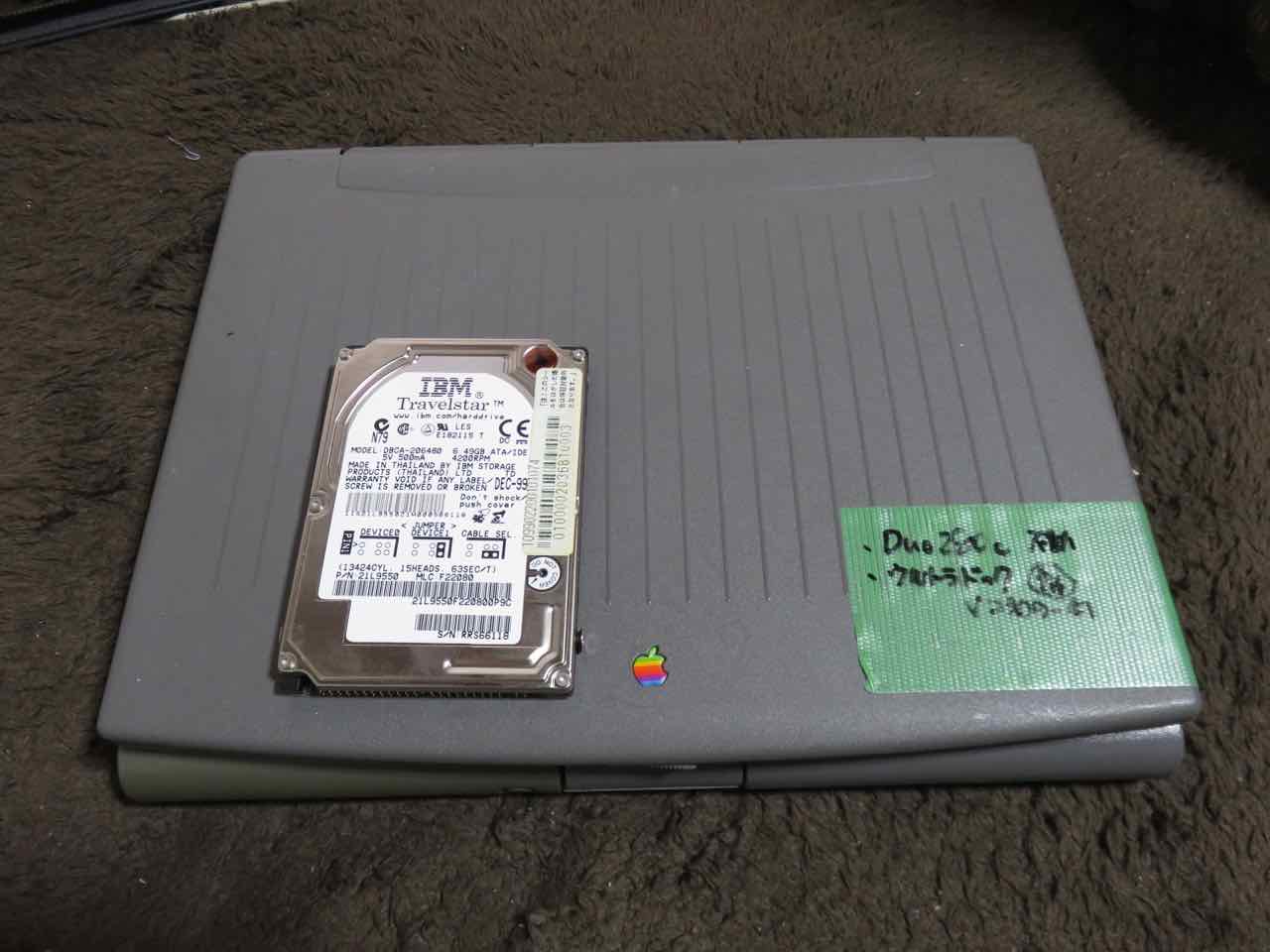 カラー液晶ディスプレイはビネガーシンドロームに陥り表示不能の状態になってしまい、ハードディスクも動かなくなっていました。