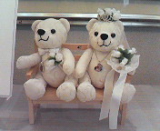 今日のいい天気が、ふたりの門出を祝福してくれているかのようだ。披露宴会場の、クマ。ケーキカット用のフルーツケーキと、ふたりの登場を待つひな壇。メインの牛ヒレ肉。美味でした。あたたかい、いい式でした。末永くお幸せに。