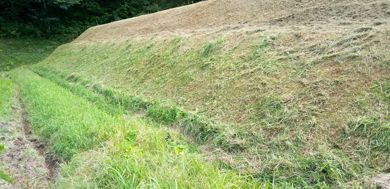 >農家の草刈りは春から秋の終わりころまで続きます。長時間は出来ないけど短時間なら趣味のような感じ。体力維持には良いけどね、音がうるさい。土手の上から斜め下を刈る時は機械を立てるんです。 >田舎の道は都会と違って管理が難しいです。とくにアスファルトに草がはびこってくるんです。道路がだんだん狭くなっていく感じ。草は大切な存在だけど困る場所もあります。