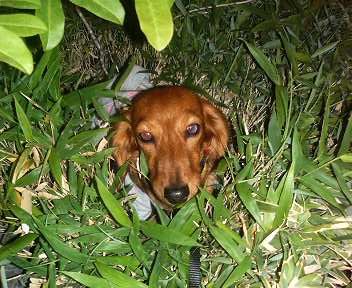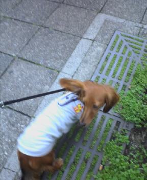 夜のお散歩中。あたしは道端の草をみつけると即とびこんじゃう。ちょっぴりパクっ。あわてて引き出されちゃったでもまた草を見つけて飛び込む。あれ~深くて出れなくなっちゃった。教訓 : よいこはやたらに草にとびこむべからず
