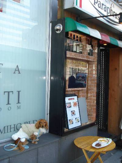 こんにちは、シフォンママです(o*。_。)oペコッ今日もコチラは・・・寒いです・・・銀座はワンコと入れる店が少なそうなので、ネットで調べてランチしました。↓小さなイタリアンのお店です。注文したのは伊勢えびのパスタ↓これで2人前でしたワンコメニューもあったので注文↓ペロリとたいらげてました↑席は長いすのソファで、一番奥がワンコ席です。平日・日祝日ともにランチメニューが揃ってて、パスタもウマウマでしたよ