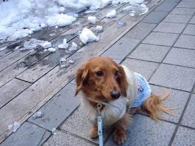 こんにちは、シフォンママです(o*。_。)oペコッ昨日の夜も都心は雪が降りました・・・積もるかな~って期待したけど、結局日付が変わる前にあがり、雪もほとんどとけてしまいました・・・先日散歩したとき、こんな風景が↓ちょっとした広場だったので、雪だるまの後なのかな?↓もっと雪がいっぱいのとき撮りたかったね最後は甘い匂いのスイーツ店の前で↓おいしいスイートポテトをお土産に買いました