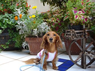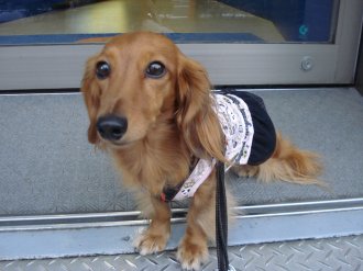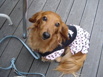こんにちはシフォンママです(o*。_。)oペコッ今日からジム行ってきました~♪骨盤ストレッチとおなか引き締めの体操をして、機械をチョコチョコっとしてシャワーをあびて約4時間。続けるためには、もっと短くしないとダメですね・・・反省先日の横浜での出来事。ワンコの洋服をみようとワゴンをのぞいてた時、「あら~かわいいわね~、私ダックスが大好きなのよ~」とおばさんから声をかけられました。「かわいいわね~かわいいわ~」お褒めのことばの連発に気を良くしてた時、「ダッコしてもいいかしら~」「あ、どうぞ~」とそっと渡しました。でも人一倍人見知りなシフォン、キョロキョロ不安そうに私をみつめます。「かわいいわね~ こっちみて~ ママはいないわよ~」私の方をみせないようにしたため、ますます不安になるシフォン。とうとう体を乗り出してきたので、「すみません」といって引き取りました。名残惜しそうにしながらも、「どうもありがとう」といって笑顔で去っていきました。おばさんへ一言。かわいがってくれるのは嬉しいけど、ワンコの気持ちも考えてくださいねあたし、人見知りなの・・・