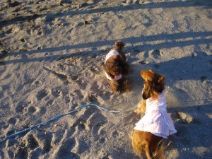 こんにちは、シフォンたんです(o*。_。)oペコッ今日ね、初めてバナナ食べたよ~今まで警戒して食べなかったけど、けっこう甘くておいしいね~昨日の続き~砂浜で走ってたらお友達がいたよ↓もうすぐ2歳になるナナちゃんまたいつか遊んでね~