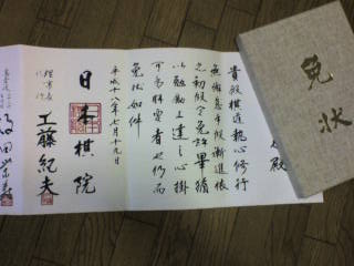 日本棋院で、ファン感謝イベント、初段特別キャンペーンをしています。平成18年7月1日~9月30日申請分が初段免状料31500円が21000円に。7月の初旬に、長男がお世話になっている近所の方からお話がありました。 「お子さん、初段の申請をしませんか? 僕なら謝礼は要りませんから」長男はちょうど7月が誕生日なのです。記念になるかな、とお願いしました。中学生の長男は土曜の午前は近所の区民センターで、午後は新宿の教室で碁を打っています。でも普段は何もしていない日が続いています。9月からは土曜もテニス部の練習が入るそうで今後どうなるか分からないのです。雨の日は練習が無いだろうから細く長く続けてもいいし一度すっぱりやめてもいい。本人に任せましょう。 私はお休みしています