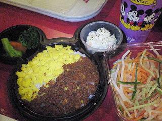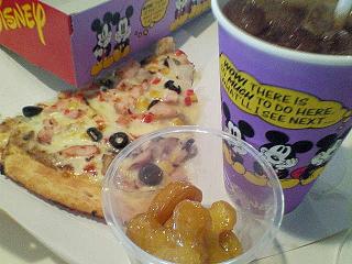 ディズニーランドでお昼前のちょっと腹ふさぎに・・・スターツアーズ出口にあるピザコーナー。ピザとドリンクと、ミッキーの形の大学芋です♪ピザは具がたっぷりでおいしい2階席から、何かお楽しみが見えていたようです。お昼は近くのホテルオークラ東京ベイまで歩きました。おいしすぎて、写真を撮り忘れ夕方は「エレクトリカルパレード・ドリームライツ」を見た後プラザレストランでご飯もの。ポップコーンはどこも長蛇の列でした。30分待ちで、やっとキャラメル味を入手。食べすぎ!次の日は玄米表皮と胚芽の粉末を食べたり ↓ カロリー抑え目です。