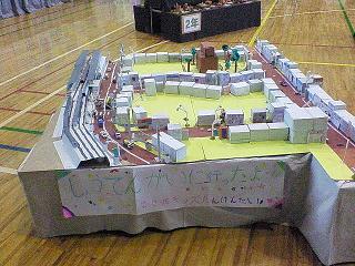小学校の展覧会♪子ども達のチカラのこもった作品がずらりと並びます。様々な色水・・・何がはいっているのでしょう↑ 近隣の街探検をし街並を再現しました。キノコキノコ?? ↓家庭科作品、タオル掛けの数々です~お面だ~!↑ これは、銀紙っぽいきらきらする物でした。二つ折りにして模様を描きひらいて予想外の模様を楽しんでいる様子。こうしてみるといろいろな表現方法がありますね~パソコンで ポポンと手軽に作れる昨今ですが手で表現を工夫することの大切さを再確認しました。クリスマスの飾りつけは久しぶりに作ってみようかな。