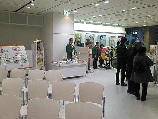 今年も地域の交流会がありました♪180人ぐらいいらっしゃったようです。保育のお子さんや、ベビーカーで同伴のお子さんもたくさん東京マイコープ(pal*system)でグループや委員会で一年間活動したことを発表するのです。私は朝のテーブルや椅子のセッティング、また、お茶コーナーの手伝いで行ってきました新商品の開発をサポートするグループ。産地に行ったグループ。牛乳のレシピを色々紹介してくださる委員会、などなど。そのほか、たくさんの人が参加した勉強会、こじんまりと集中したお話会などさまざまな人が、さまざまなことをされていて「あ!わたしもそれやりたいな☆彡」と思うものも多くありました。↑ ATJ・・・オルタートレードジャパンの方たちがコーヒーの試飲をさせてくださいました。「食べる国際協力」でフェアトレードの草分けの団体です。バランゴンバナナ・東チモールコーヒーなどをいつも頂いていますが今回のはラオスのコーヒー(聞き違えでしたら申し訳ありません)。香りが高くておいしい!それから丸和油脂の方が、パンに塗るスプレッドを色々試食。(あっという間に無くなり、味見できなかった・・・)↑ pal*system共同事業部(?)が牛乳あれこれ飲み比べ。高温殺菌の牛乳は、コップを鼻に近づけた時点で独特のにおいがしますね。私たちお手伝いもおいしいお弁当をいただきましたお茶出しの隙間時間に急いで食。↑ お茶コーナーの仲間のお姉さんたちこんせんくんのCMです ↓ 動きます。