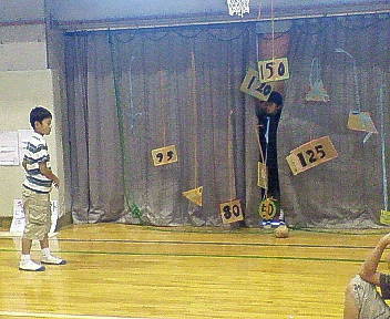 小学校の「ささの子まつり」です50周年なので金色のくす玉もありました学年縦割り班で、ゲームのお店の構想を練ります。雨模様の今年は体育館・和室・図書室など室内を使い大人も子供も大賑わいでした。大人気のストラックアウト。手作りのボールを蹴って的に当てます。もぐら叩き。下で子供たちがペットボトルや頭を出します~汗だくのことでしょう。地域の大人の折り紙コーナーではバラの花を折って文字を作っています。「50周年」 ↑ うちの子担当の割りばし鉄砲の射的。あれ?いない?高学年の男の子たちが小さい子に丁寧に教えている姿が印象的でした。他にもお化け屋敷やコイン落とし、ベーゴマ、スタンプラリーなど盛りだくさん。呼び込みの子供たちもたくさんいて、楽しい半日でした。10月1日(月)は都民の日。10月2日(火)は今日の振り替え休日で、休み続きの子供たちです。