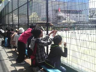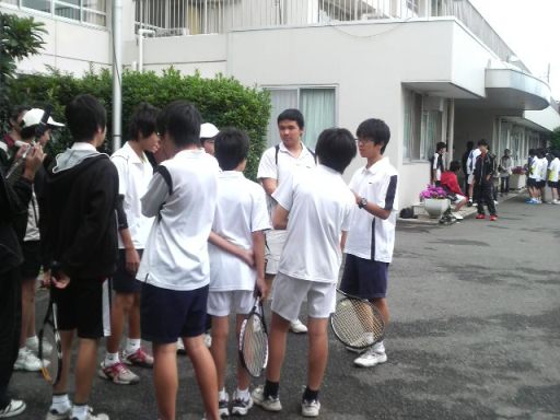 今日は次男の部活の団体戦でした 木曜日に中間テストが終わって「さあ部活に燃えるぞー」と勢い込み 金曜日朝一番の体育の授業(ハードル)で転倒 左手首にヒビが 右利きですが、左手でトスを上げたりできないし、転んで手をつくと今度こそ複雑骨折ですので、この団体戦は出ないことになりました 明後日は修学旅行・6月は運動会、そして7月は最後の団体戦です。養生してほしいです・・・ ・・・うちの子はともかく、部活の子どもたち、元気よくプレイしました。小平市の私立〇〇中学校が会場。3面並んでコートがあり、一面を一組でずっと使います。団体戦はダブルス2つ、シングルスを3つの順番で戦い、先に3つ勝ちを取ったほうが次に進めます。一回戦は2つのダブルス、3つのシングルスとも勝ち。ジュースジュースでどの試合も長引き、両隣のコートでが次々と終わる中、うちの組はずっとやっているのです。主審や副審の子どもたちも寒そう~2回戦はそんなことで始まるのが遅く、しかも、またもやジュース続きで長引きます。とうとうダブルス2組目の途中で役員さんから「このあと3面展開したいんだけれど」と役員さんから声をかけられたのです。 順番に一つずつ、ではなく3面全部使って一気にシングルスをやってしまう。うちの学校は人数が少なく、審判が出せるかどうか?部員が40人ぐらいいる学校もあれば、うちのように一桁のところもあるのです。とりあえずコーチ席に入っていた部長と別の子に交替してもらって、部長はアップもそこそこにシングルスにまわります。そして急遽U君が副審デビューです!ごめんね、日ごろ先輩から審判の練習をさせてもらっていないから、こんなときにドキドキしますよね。2回戦は強くて厳しそうな学校です。2年のシングルスのK君のカードは勝てそうだな、と観戦していたら相手の子が、うまくいかないとラケットをコートに叩きつけるんです。態度悪い・・・ 当然K君が勝ちました。一年生の子たちも、「あんな態度・精神だから負けちゃうんだよねー」なんて言っていました。よしよし。見習うんじゃないですよ~。3面一度に始まっているのであっちこっちをうろうろと。Yくんのシングルスはまだ続いています。相手の子がちょっとよろよろしています。あ、隣のコートの部長が負けました。これで相手校の勝ちが決まったのでこのY君のところは没収試合になるのかな?あれ?止められなかった? あとちょっとのいいところなので、役員さんも見逃がしてくださったのかな?あ、相手の子がちょっと足を痛めてしまったみたい。。。コーチが棄権するのサインを出しました。この後の試合、大丈夫でしょうか・・・結局2回戦は2-3で負け。でもみんな粘っていましたよ!7月の試合が楽しみです。先生もずっと付き添ってくださいました。そして私たち保護者も賑やかに参加しました。かわいい一年生も応援しに来ましたよ。ほんと、かわいらしいんです ↓ ずーっとにこにこと一年生のお世話をしてくれたKくん、ありがとう!