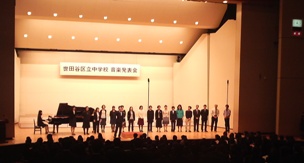 みんなが「手紙っていい曲!大好き!」という声を「ふーん」と感動もなく聞いていましたが、次男たちが歌ったらじーんとこみあげてきて涙ボロボロでした~区内の中学校による音楽祭。うちの学校は、音楽を選択している2~3年生プラス先生からお声かけのあった数名による合唱です。男子が足りなかったんでしょう、次男やAくんも参加要請がありました。Eさんが伴奏だ~ 昨年はインフルエンザで中止だったので1年ぶりの開催。おととしは長男も3年生の時に参加、「流浪の民」と「ホタルこい」。今年は「手紙」と「流浪の民」です。次男たちが並び、先生が登場され、イントロスタート。 ♪拝啓 この手紙読んでいるあなたは どこで何をしているのだろう 15の僕には誰にも話せない 悩みの種があるのです~・・・で、 どーっときました。今からこれでは卒業式が思いやられます コンクールではないので、合唱も演奏も手拍子が湧き起る演奏会でした。吹奏楽も良かったな~ 先日行った私立高校の吹奏楽部より聞きごたえがありました。選曲もいいんですね。プログラムの最後に「全員合唱 大地賛頌」とあったので楽しみにしていたのです。「全員ご起立ください」と言われ、すっくと立ち上がってしばらくしたら、保護者席で立っているのは私一人でしたえー・・・ 残念・・・ 大人は歌わないんですねわたしも歌いたかったんです↑ 全員合唱は先生方が舞台に勢ぞろいです。ありがとうございました。