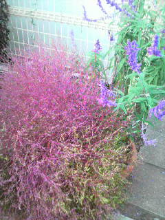 秋ですね~ 花も葉も鮮やかに色づいています。 中学校の庭です。