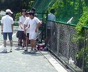 選手でない部員がずらりと並び、盛んに声をかけていました。