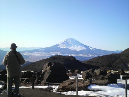 駒ケ岳ロープウェイの上からの眺めは素晴らしい。むこうに富士山、ふりかえれば海のあちらに房総半島が見えます。1日目の夕方に登ったら逆光でしたので、2日目の朝にもう一度登りました。