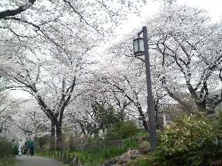 ホームのすぐ外が、小川沿いの桜並木なんです。根川緑道というのかな。今日はそぞろ歩きする人、バーベキューの人で大混雑なので、野球場の向こうの多摩川沿いを散歩しましょう。