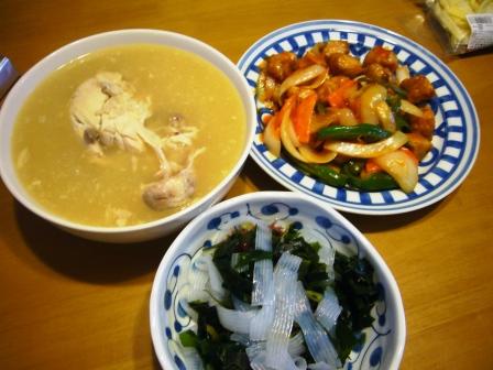 こんばんは今日は息子ちゃんの参観日仕事を終えてダッシュで帰宅腹ペコだったので夕べのお残りをかきこむシャワーを浴びたいところですが時間がないよ~急いで学校へぎりぎりセ~フ本日の参観は国語の授業です。絵を見て、習った漢字を使って、短い文をつくります。6個の絵からですが、各班で良さげな文を選んで発表結局一人1つずつ発表になるよう、先生も気を使っているんですよね。息子ちゃんの番だ大きな声で発表してますしかし文章の意味は全くわからん本人はとても自慢気…。まあいいか、声が大きかったので良しとしよう本日息子ちゃんは当番だったらしく、帰りの会の進行担当。私の方をチラチラ見ながら、やはり自慢気学校でも元気にお調子者だということがよ~くわかったよ元気に行ってくれればいいや久しぶりに夕食をアップサムゲタン(レトルトよ) 酢豚 海草サラダ今日は食べ過ぎ注意と思いセーブして食しました夜の体重57.2キロ…。朝より200g増しかし夕飯食べて200g増だから良しとしよう明日も頑張って走るぞ