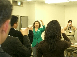 CHIKOメンバーには 現会員と卒業生を合わせて62名がMLに登録されている。みんな とっても忙しいから、新年会に集まったのは 12名今回は心斎橋の しゃぶ亭 で 開催した。おもしろいお店で 1階は カウンター席。あと2,3,4、とテーブル席となっていて、しゃぶしゃぶといっても 一人鍋だから 遅れてきた人も バッチリ料理が確保されている。でぇ・・5階が しゃぶしゃぶを食べたお客様が使用できる、カラオケルーム二次会 おおいに盛り上がりました。英気を養って、 「今年一年 がんばろう!」