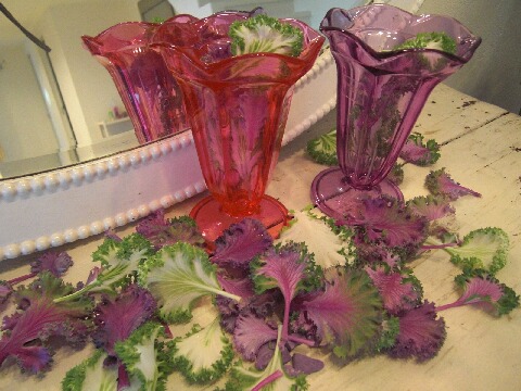 葉牡丹の季節が終わりお花が咲き始めていませんか 葉牡丹をお部屋の中で楽しんでみてわ 葉っぱ1枚1枚がこんなに素敵な色をしています 今日はなおりんさんとお気に入りの”カップ”で楽しいおしゃべりの時間を 過しました。。。 またいらしてくださいね