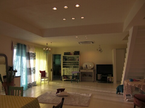 アンティークの灯りはどこか優しくて・・・・ 気持ちまで癒してくれます 淡いピンク色は♪ミルクガラスの照明。。。。透明感とつやが違います 優しい感じの色合いです ワークトップはモダンなステンレスと♪ずっと探していた タイルをあわせて "モダンな感じに すっきりとした感じの照明 お部屋の中がミックスされた感じ