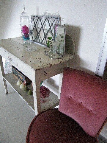 こちらのコーナーには椅子とペイントテーブルをディスプレイ。。。。。 シンプルなステンドガラスをあわせて優しい感じに 私のお部屋にはお気に入りのソファー・・・ フランフランの生地をかけて模様替えグリーンのクッションはポイントに大人っぽい・・シルクのカーテンに変えて・・・・・ 黒の花柄の生地は洋服の生地なんですよ。。。。。”セント・セシリア”淡いピンクのバラです。。心を注いで育てたお花。。。。 今が1番楽しい季節。。。。 咲き始めるとお庭がぱっと華やぎます。。。。にほんブログ村にほんブログ村 ぽちっとしていただけると嬉しいです