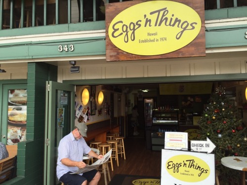 おはようございます。。。。。。。 今日は尾道の成人式です。。。。。。。 しかし、勇さん帰ってこないぞ~~~~~~~~~~ 明日の福山での成人式に出席するのか ハワイ3日目の朝。。。。。。。。 今日の朝食は並ぶぞ~~~~~~~~の勇さんの一声で 準備をして向かったのが 人気の” エッグスンシングス”って言う パンケーキのお店。。。。。。 9時に並んで1時間待ち お腹が空いたぞ~~~~~~~ エッグスンシングスで1番の人気のメニューと言えば ”ストロベリーホイップパンケーキ” これは注文しなきゃね~~~~ しかし、テーブルに出されたパンケーキを見て1番に驚くのが ホイップの量・・・・・・・・ 大抵の方が引くと思いますが見た目よりしつこくなく軽いので 美味しくいただけちゃいます~~~~~~~ チョコチップのパンケーキ。。。。。。 マカダミアンナッツのパンケーキ。。。。。。。 どれも、美味しい~~~~~ 勇さんは東京でこちらのパンケーキを食べたことがあるみたいなんだけど ハワイの方が美味しいな~~~って言ってましたよん エッグスンシングスは、パンケーキミックス(粉)も売ってます。。。。。。 日本人の方が買って帰る事が多いのか。。。。 日本語で作り方まで書いてある紙が一緒に入っているのには驚きました。。。。。 この日は窓が開放されていたので、風が心地良かったぁ~~~~~ デザートにフルールも注文。。。。 お土産用に準備されている パンケーキミックス(粉)&蜂蜜&ステッカー 考えているとは思うのだけど~~~~~ 荷物になるし重いのよね~~~~~ ハワイでは独占状態のコンビニ。。。。。 ABCストアで買った はちみつ クマさんの容器が可愛いでしょ~~~~~~ でも、帰るとき機内への持込は出来ないので スーツケースに入れてくださいね~~~ この日は朝食を済ませ アラモアナへショッピング。。。。。。。 私はスーパーめぐりの方がいいのにな~~~~~~~にほんブログ村 いつも、応援ありがとうございます
