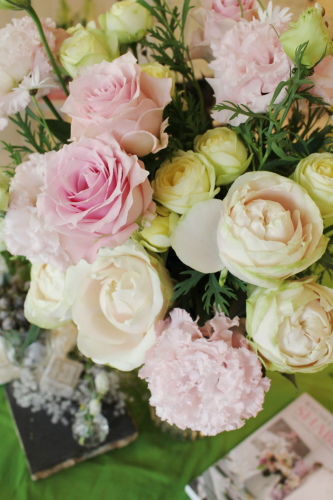おはようございます。。。。。。。 ここのところ寒い日が続いています カイロを貼って出勤ですよ~~~~ 昨日の母への贈りものは 淡い色目の花束をプレゼントしましたよ お花の好きな母なのでとっても喜んでくれました 花を渡したときの嬉しそうな表情を見て 私も嬉しくなるのです。。。。。。 淡いベビーピンクのバラ。。。。。 トルコキキョウ。。。。 光の感じで黄色に見えますが こちらは淡いレモンイエローのバラ。。。。。。 お花屋さんで私の好きなお花を選んでいる時間も楽しくて仕方がありません。。。。。 ふんわり生けるより ブーケのように生ける感じが私は好き。。。。。 母はこの感じの生け方が好きみたいです。。。。。。 ローズわ~ぁ ”花より団子かな”~~~~~~ 写真を写していてもお花のときは近寄って来ませんからね~~~~ だって、お花は食べれないから・・・・・・・ では、今日も1日お元気でお過ごしくださいね。。。。。。。 にほんブログ村 いつも、応援ありがとうございます